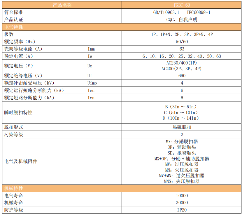 TGB1N-63 小型断路器(以下简称断路器)主要适用于交流 50/60Hz,额定电压 230V/400V,额定电流至 ...